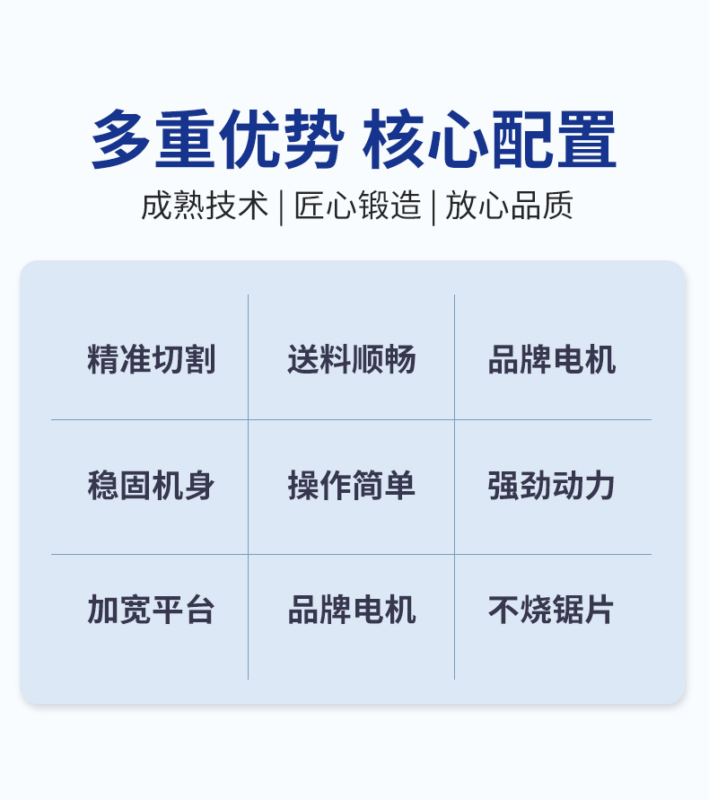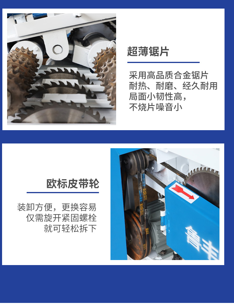 电机反复试机调试接电即可使用,采用超薄高品质合金锯片、耐热、耐磨、经久耐用局面小韧性高、不烧片、噪音小,装配欧标皮带轮,装卸方便、更换容易仅需旋开紧固螺栓就可轻松拆开。