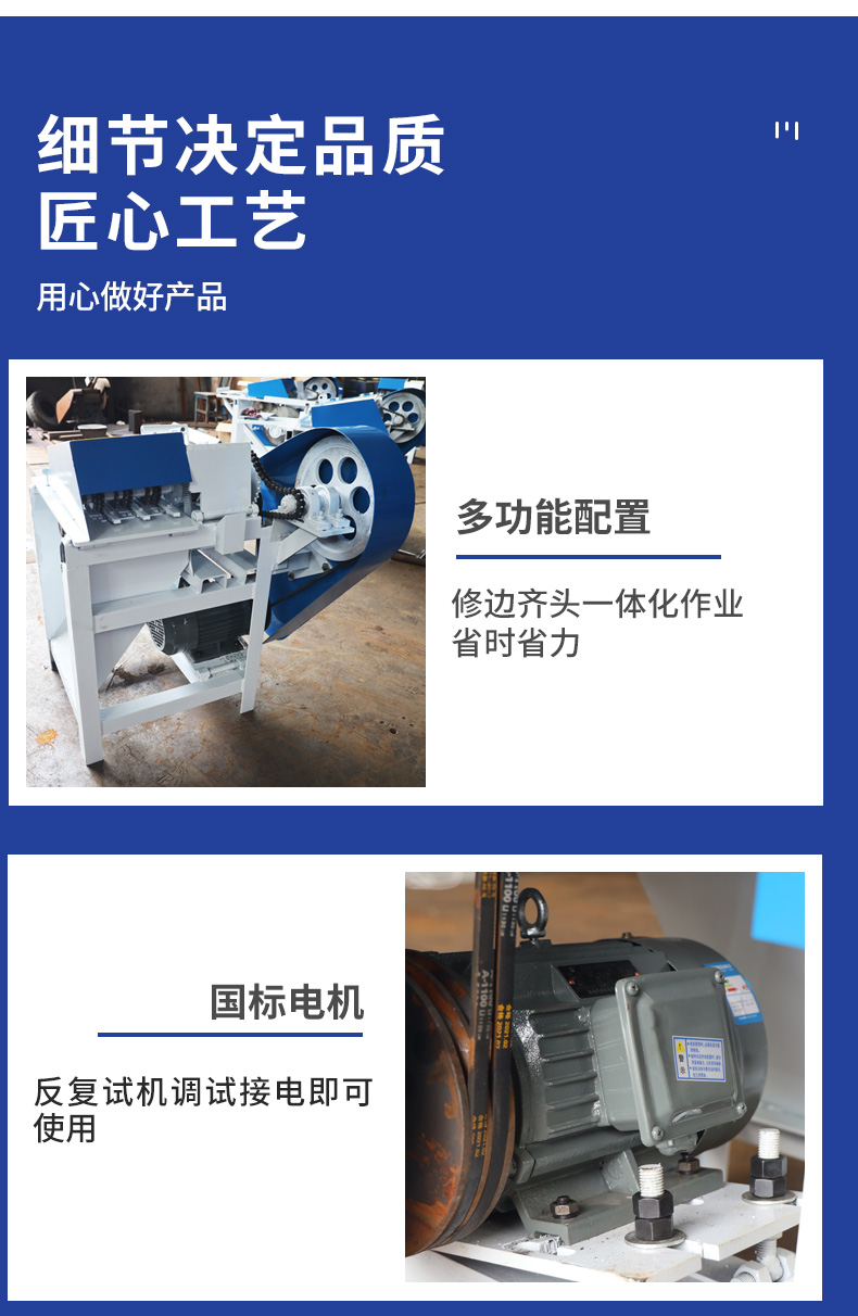 简单高效地解决端部残料问题,精装配工艺出厂测温、测噪、动平衡多道工艺,多功能配置修边齐头一体化作业,省时又省力。